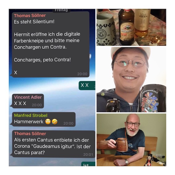 Denn viele BbBb und KbKb beteiligten sich über E-Mail und WhatsApp an der ersten virtuellen Kneipe unserer lb. Alemannia. Wir sind geneigt zu behaupten, es konnte eine weitaus höhere Kneipaktivität festgestellt werden, als zu mancher normalen Kneipe im richtigen Verbindungsleben der letzten Zeit; nur schade, dass sich manche Aktive anscheinend in einem Funkloch befanden.